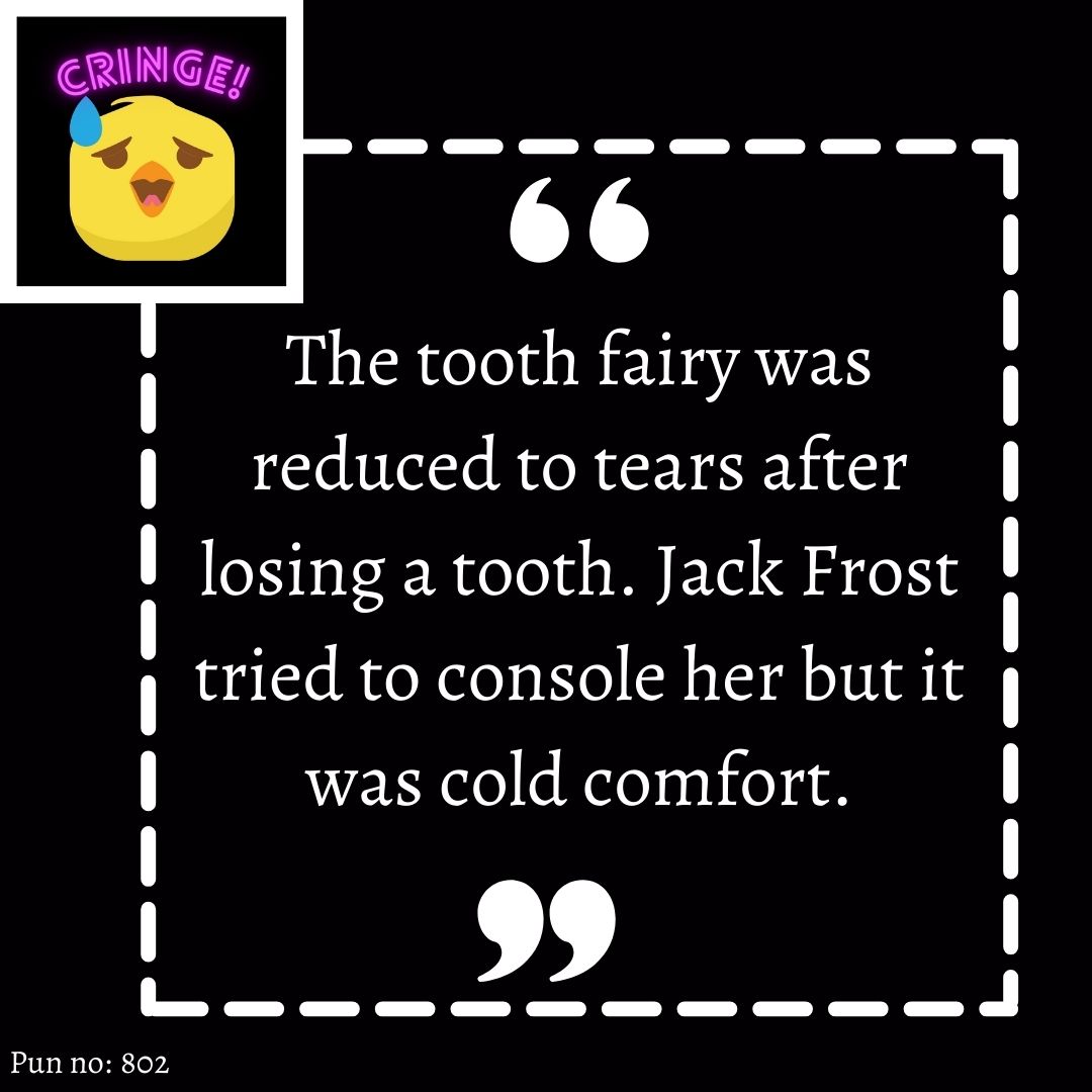 πŸ˜…πŸ˜…The tooth fairy was reduced to tears after losing a tooth. Jack Frost tried to console her but it was cold comfort.πŸ€ͺπŸ˜‚